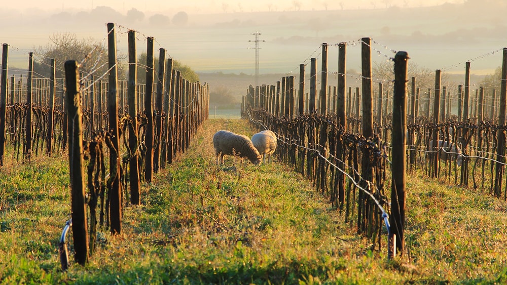 Einen Beitrag zur ökologischen Bewirtschaftung übernehmen auch unsere Schafe. Im Winter weiden sie zwischen den Reben und düngen unsere Weinberge so auf natürlich Weise.